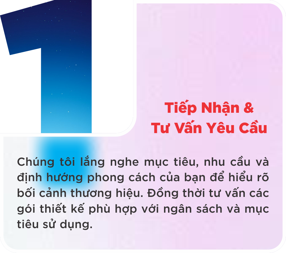 Đối với tất cả khách hàng mới, WoDesign sẽ làm việc theo quy trình rõ ràng: tiếp nhận yêu cầu → tư vấn → báo giá → tạm ứng 50% → lên mẫu → nhận góp ý → hoàn thiện & bàn giao.